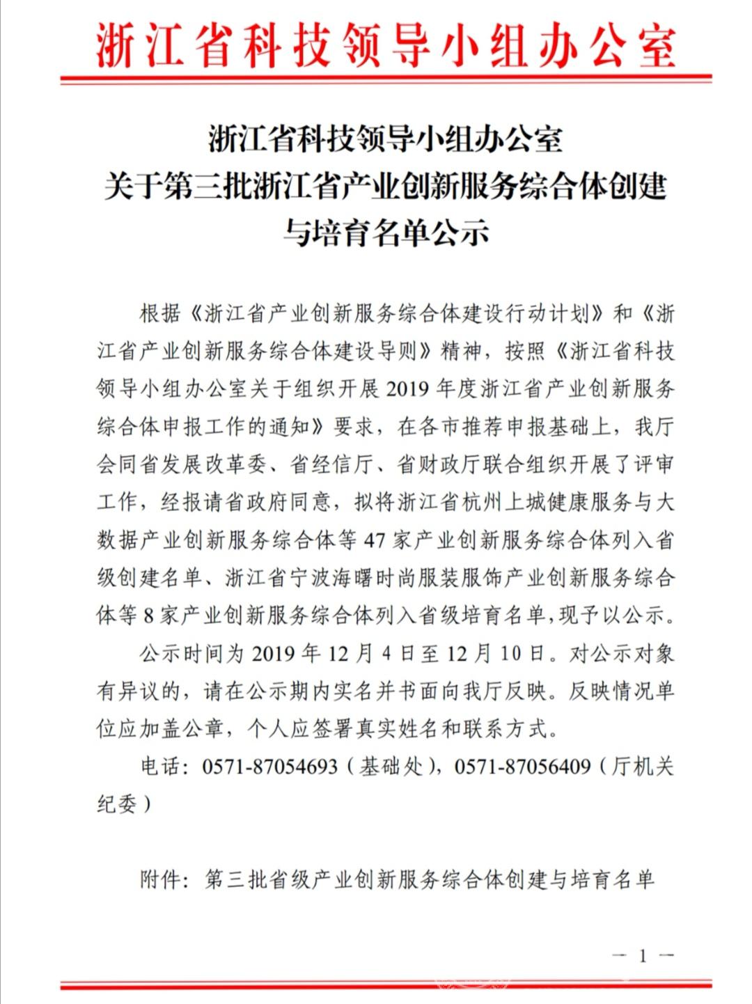 12月4日,浙江省科技领导办公室发文,第三批浙江省产业创新服务综合体创建与培育公示名单发布,由纽约国际588888线路检测中心智能锁具研究院负责运营与管理的浙江省温州瓯海智能锁具产业创新服务综合体列入省级创建名单。这是我校研究院负责运行和管理的第二家产业创新服务综合体列入省级创建名单,是我校服务地方产业发展的又一重要成果。