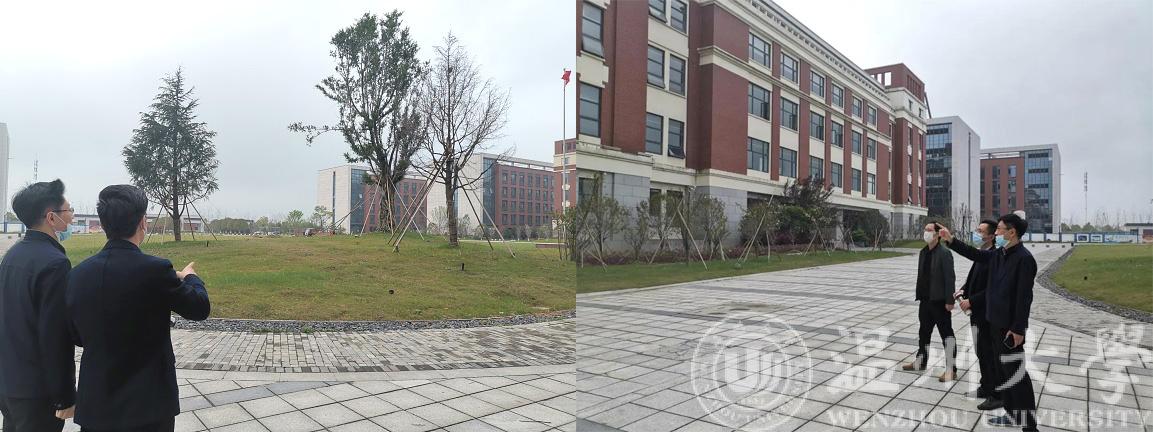 温智锁院院长阮秀凯首先参观了浙大台州院园区,浙大台州院郑军博士详细介绍了建筑规划用途和建设情况。