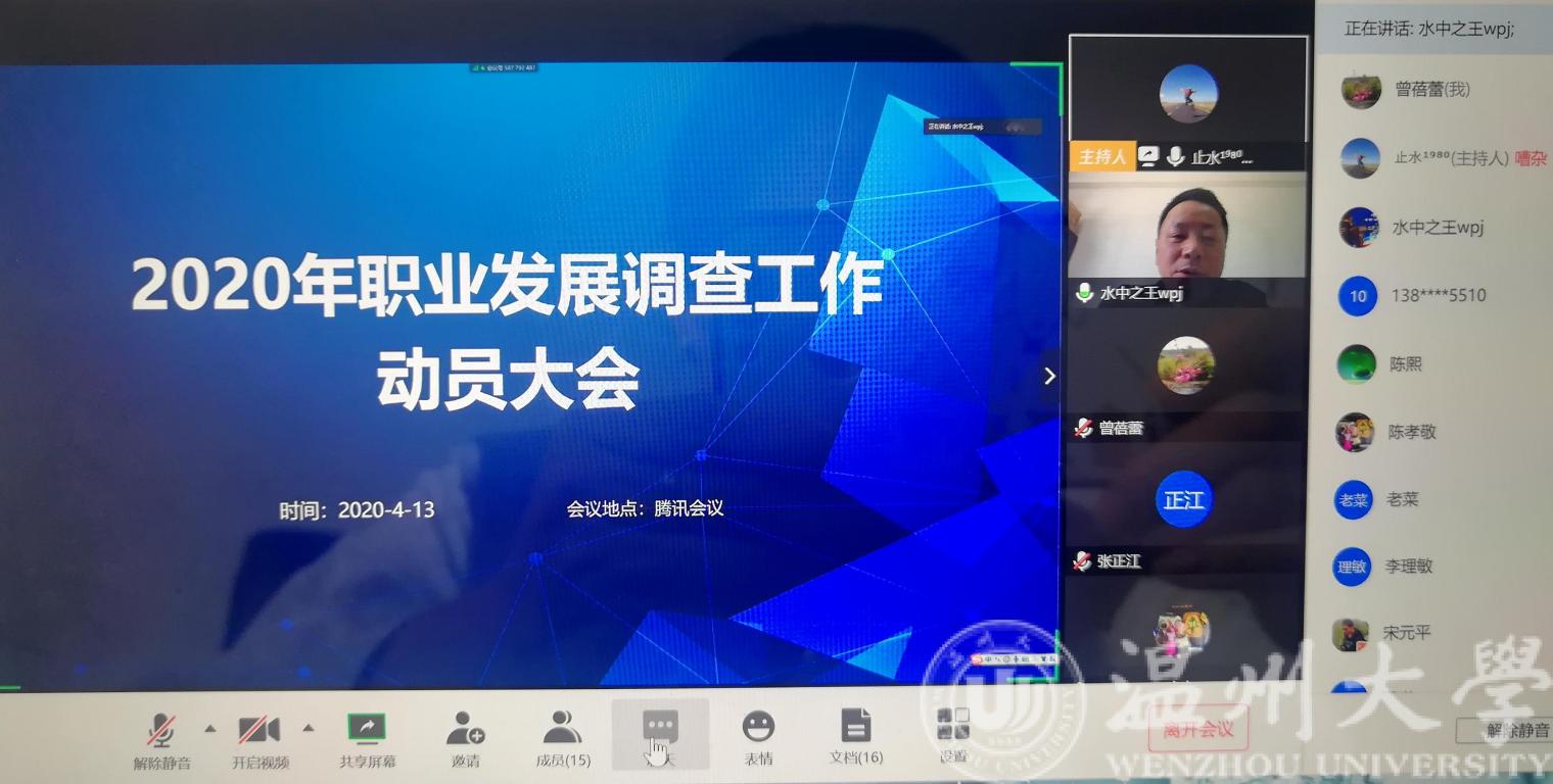 2020年4月15日下午1:30,纽约国际588888线路检测中心通过腾讯会议召开了2017届毕业三年后,2019届毕业一年后职业发展情况与人才培养质量跟踪调查动员大会,院长汪鹏君、副院长陈孝敬、副书记曾蓓蕾、各系主任、专业负责人、2017届和2019届班主任以及学工办辅导员参加了会议。会议由学院党委副书记曾蓓蕾老师主持。