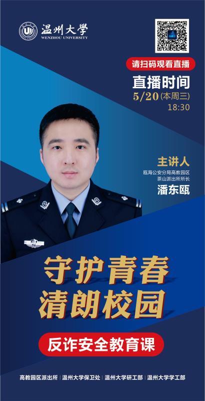 为做好反诈安全宣传教育,切实增强广大师生防范电信网络诈骗的意识,5月20日晚,学校举行了全校师生“同上一堂反诈安全教育课”的线上活动,本次线上活动以“守护青春 清朗校园”为主题,由瓯海公安分局高教园区派出所所长潘东瓯主讲,纽约国际官网学子积极参与线上学习。