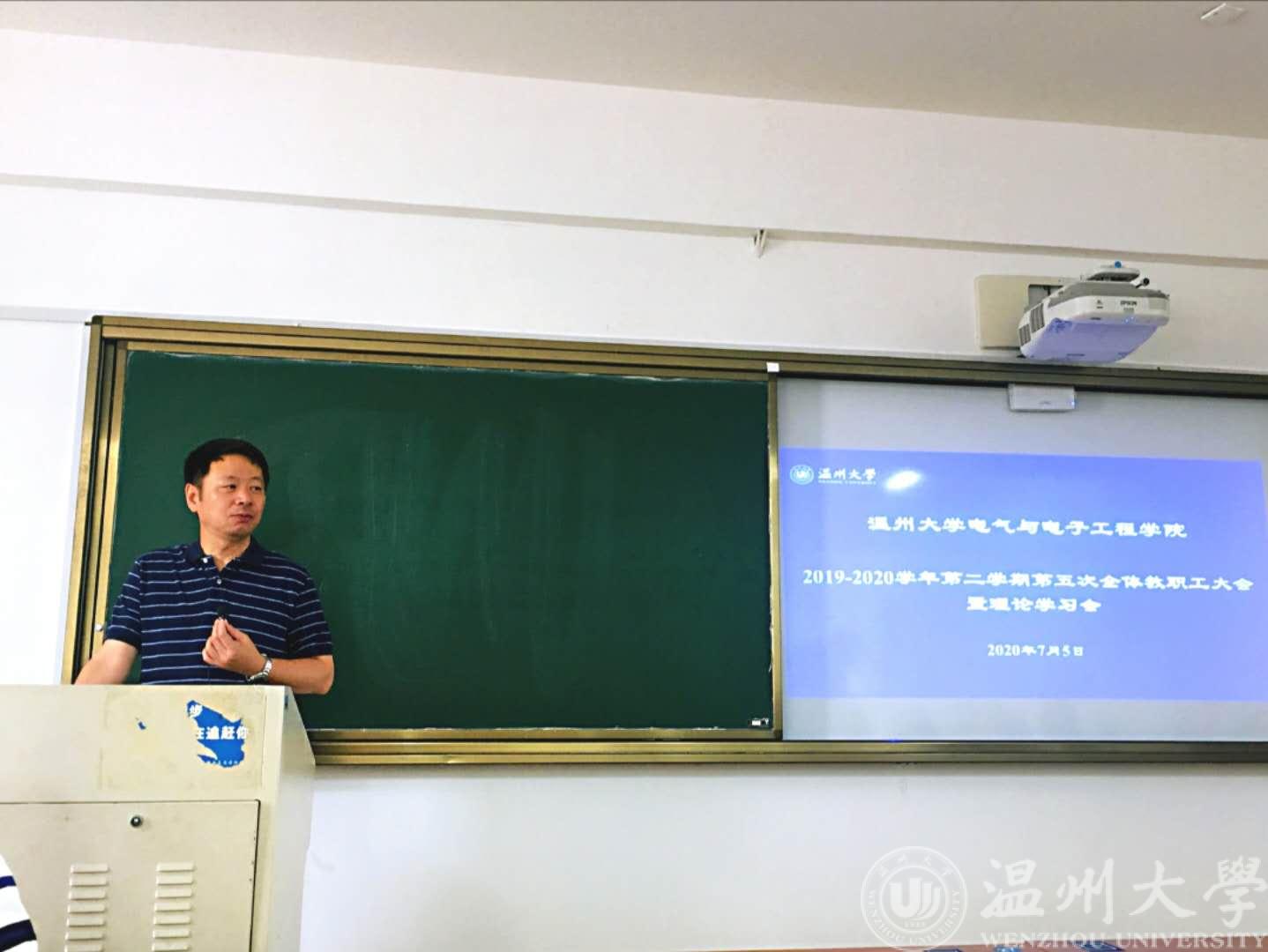 7月5日上午,纽约国际588888线路检测中心在南校区1号楼A207召开2019-2020学年第二学期第五次全体教职工大会暨理论学习会。会议由学院党委书记李方强主持,全院教职工参加会议。