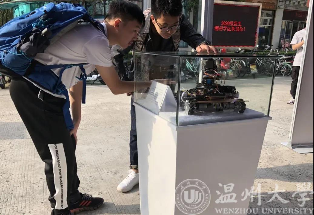 为让各位小萌新能够在报到当天对学院有进一步的了解,在迎新报到点特别安排放置了四个展示柜,展示柜里放了四个学院纽约国际官网学子自己设计制作的智能车、微电网模拟系统等作品,吸引了众多新生和老师驻足观看!