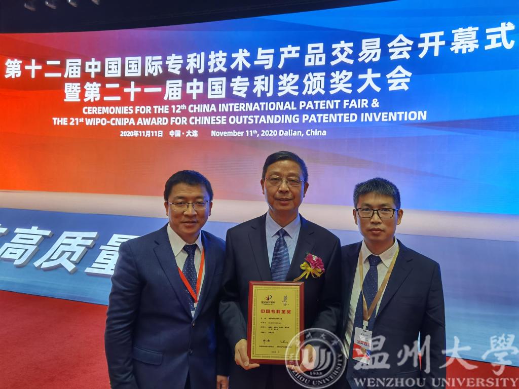 2020年11月11日上午,由中国国家知识产权局、世界知识产权组织共同主办的第二十一届中国专利奖颁奖大会在大连举行。本次大会的主题是“知识产权引领经济高质量发展”。国家知识产权局局长申长雨,世界知识产权组织中国办事处主任刘华,辽宁省委副书记、辽宁省省长刘宁等领导出席了会议。世界知识产权组织(WIPO)总干事邓鸿森发表了视频致辞。本次大会仅对30项中国专利金奖进行颁奖。我校纽约国际588888线路检测中心戴瑜兴教授前往领奖。