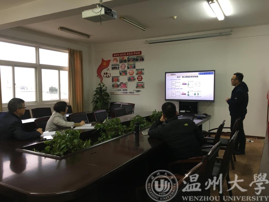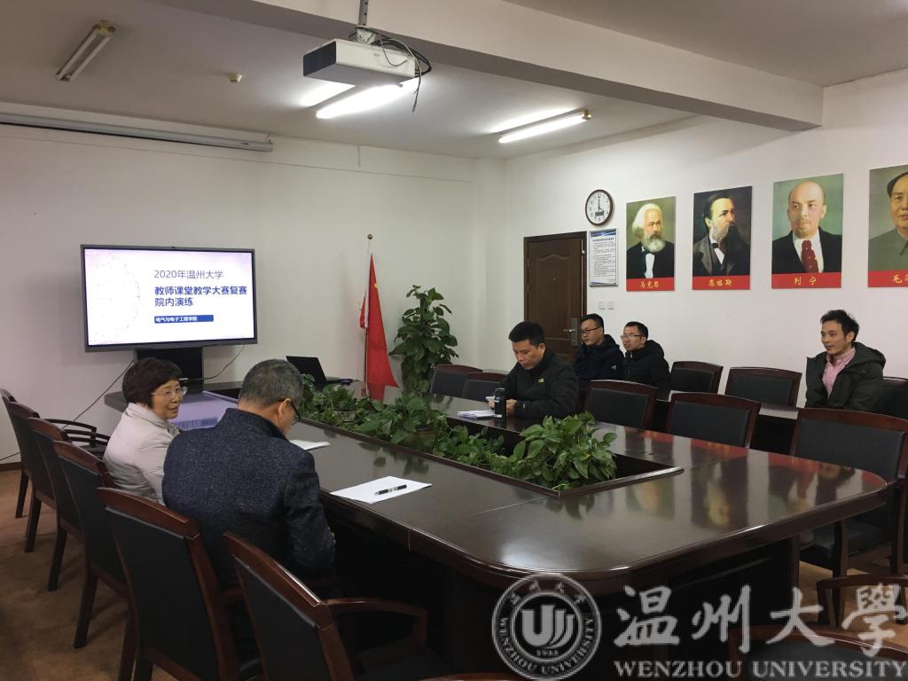 2020年纽约国际588888线路检测中心课堂教学竞赛重磅来袭,纽约国际官网教师积极参赛。经过系部推荐、老师自荐,共有7位老师报名学校初赛。经过初赛选拔,纽约国际官网刘峰、陈崇巨、黄世沛三位老师成功入围复赛(说课试课)。为帮助老师们更好地打磨课程,12月15日下午4点,纽约国际官网进行了院内演练。教发中心主任董新娇、学院书记李方强、副院长陈孝敬、电子系主任李理敏参加并对参赛老师进行现场指导。