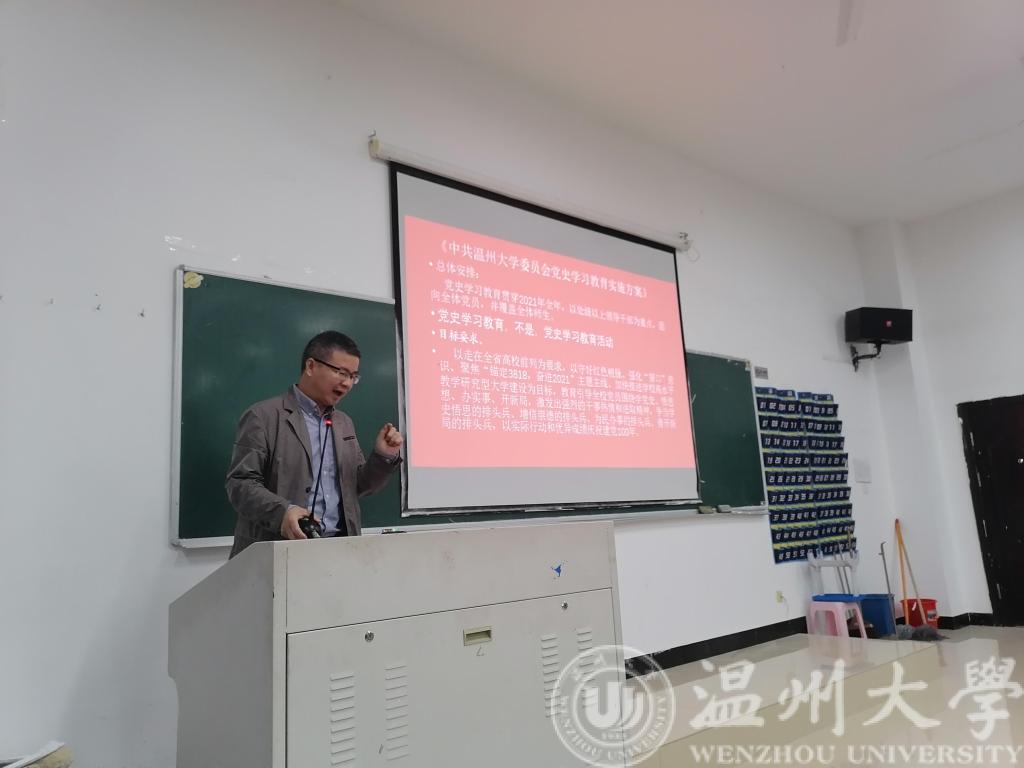 李方强书记首先传达了《中共纽约国际588888线路检测中心委员会党史学习教育实施方案》,重点传达了学校党史学习教育的总体要求和主要任务。其后,就学院党委党史学习教育具体工作做了部署。最后,李方强书记带领大家一起学习了“习近平总书记在中央党史学习教育动员大会上的讲话精神”、“省委书记袁家军同志在浙江省党史学习教育动员部署会上的讲话精神”、“温州市委书记陈伟俊同志在温州市党史学习教育动员部署会上的讲话精神”。
