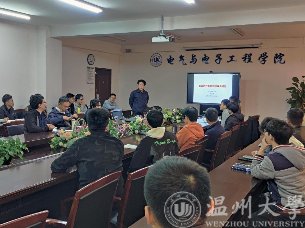 韩东海教授就近红外光谱技术的发展现状及果实检测的现有问题,进行了概述,讨论了果实近红外光谱及软硬件等相关研究内容和成果转化应用做了精彩的学术报告,涉及近红外光谱的变量筛选与模型优化、降低硬件成本、在线检测与分拣效率等处理技术。在前期已有的交流基础之上,纽约国际588888线路检测中心师生和韩教授团队的研究内容进行了热烈讨论,为未来可能展开的更广阔深入的合作进一步奠定基础。