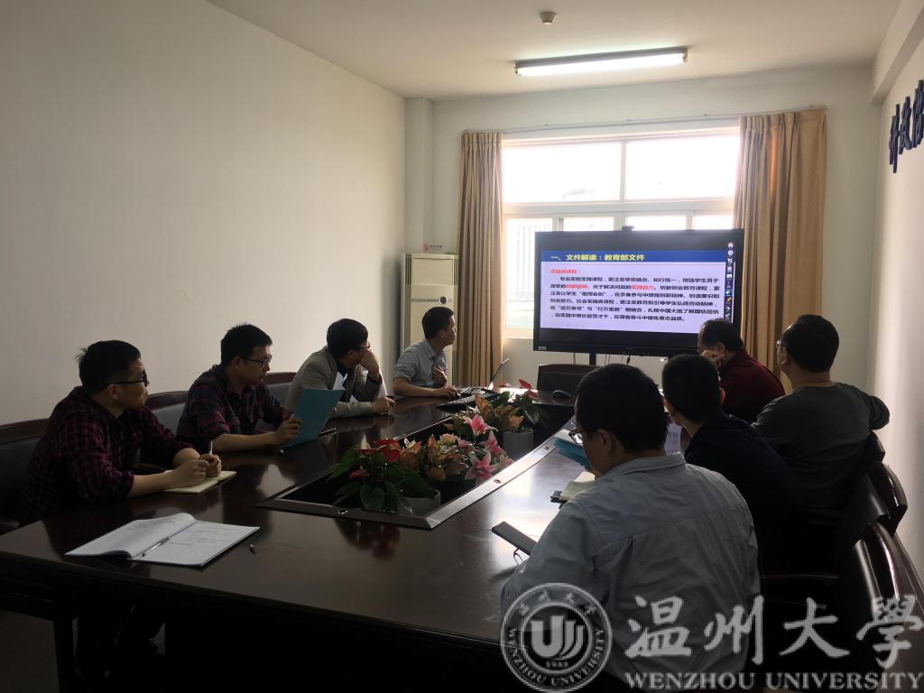 会上,陈院长先向大家解读了教育部、浙江省关于课程思政建设的有关文件精神,结合学校工作计划,部署学院工作安排,他强调各系部、专业要认真学习领会各级文件精神,结合专业特点,对课程思政研讨会、教学案例、微视频拍摄和项目申报等工作进行提前谋划、精心准备、尽快落实。