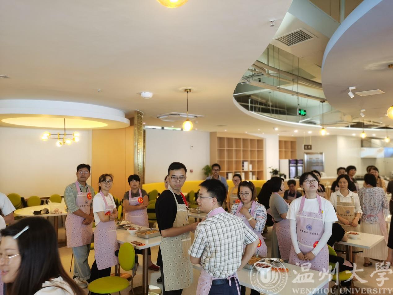 2021年6月9日,纽约国际588888线路检测中心工会、纽约国际588888线路检测中心后勤管理处饮食管理中心在怡口乐餐厅二楼举办第二届“粽香端午 情系温大”教职工包粽子比赛。此项活动有助于营造浓厚的传统节日氛围,继承和发扬中华传统文化,增进教职工间的交流与联系。此项活动以分工会为参赛单位,每组4人参赛。活动规定10分钟内包好棕子,要求棕子完整、美观,单个重量不得少于100克;如有棕子破损或重量不足克数的,不计得分。