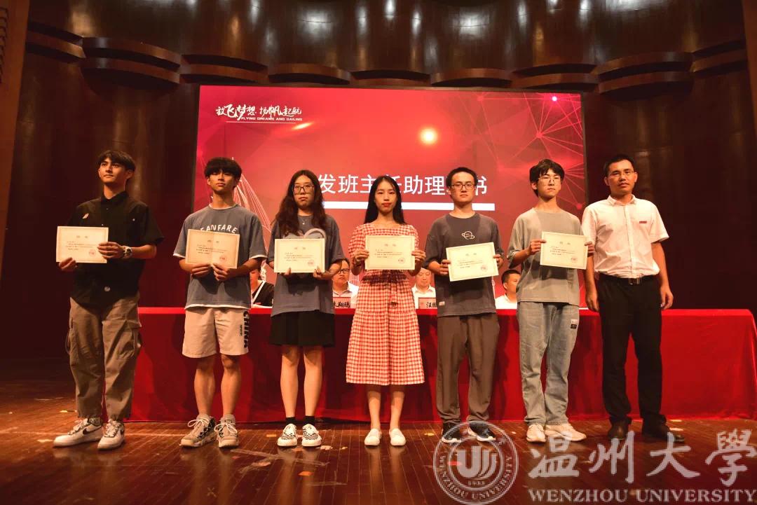 典礼第五项,由朱海永副院长向给予2021级新生帮助和热情的6位本科生班主任助理颁发证书,并对他们表示感谢。
