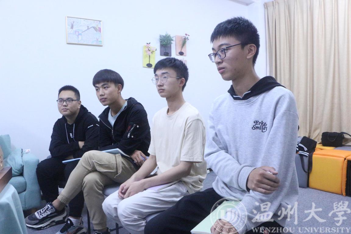 11月4日晚六点整,学院幸福充电站迎来了“辅导员热线”第1期活动,本期邀请学院团委书记廖晓安老师作为嘉宾,12位男同学报名参加。