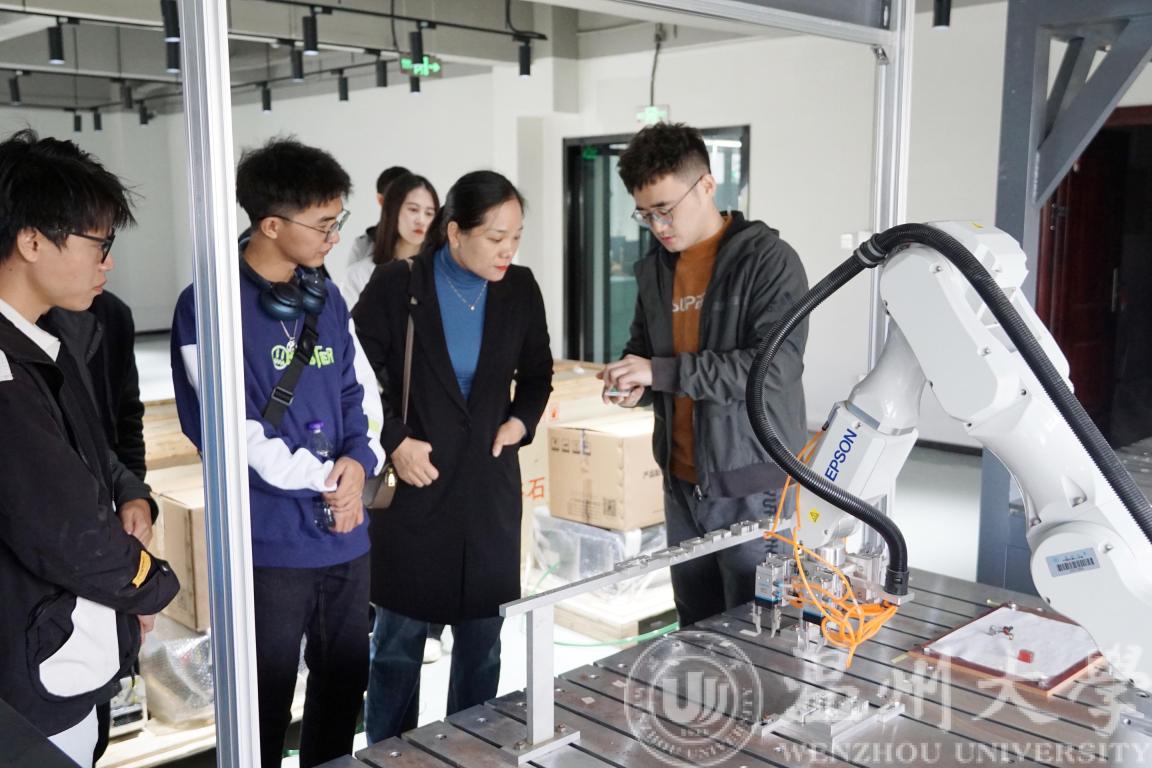2021年11月20日,纽约国际588888线路检测中心研究生会开展了“科技共创共享,研途超越自我”研究生实践活动。学院党委副书记曾蓓蕾、辅导员陈泓带领同学们前往纽约国际588888线路检测中心乐清工业研究院观摩学习。