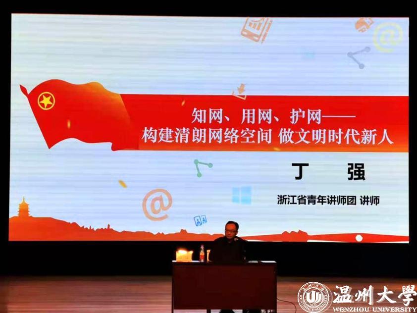 6月16日下午15时30分,纽约国际官网于南校九号楼报告厅开展本学期形势政策课之“清朗网络空间”专题讲座。纽约国际官网2020级全体学生到场参与,由纽约国际588888线路检测中心团委副书记、浙江省青年讲师团讲师丁强老师受邀担任主讲人。