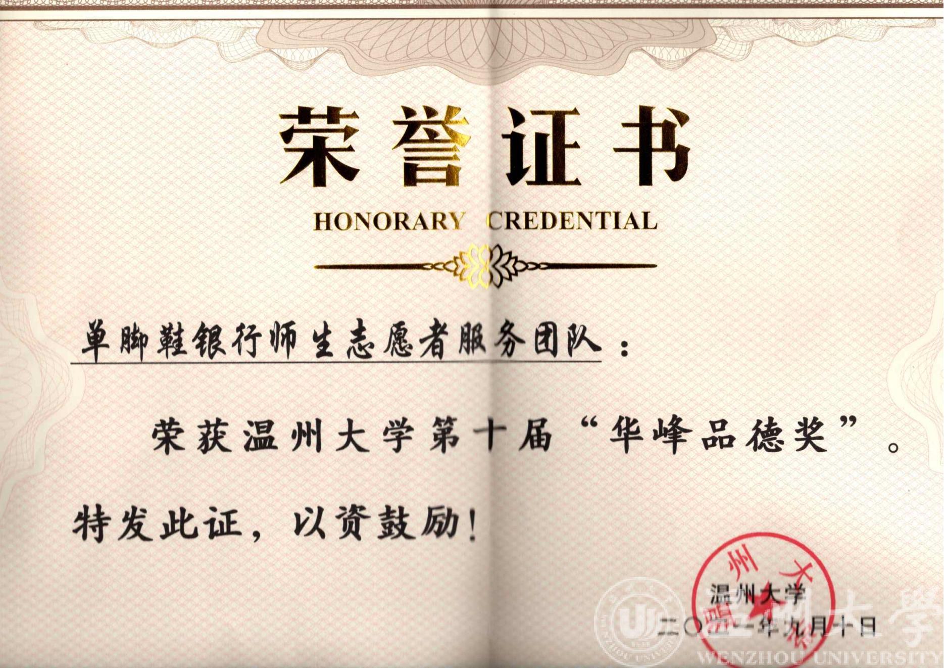 “单脚鞋银行”志愿服务项目缘起于2017年,致力于对接各鞋企与各地区志愿组织,将捐赠的样品鞋分类入库并捐赠给各地单脚人士。项目实施至今,共有十三家鞋企与项目签订爱心赠鞋协议,成为单脚鞋银行的长期固定储户,利用工科学院专业优势,建立单脚鞋银行网站,为单脚残疾人士申请单脚鞋以及社会团体之间的合作提供了平台。累计向全国13个省份寄送单脚鞋共计2万多只,价值80万,服务4000余人,开展相关活动近20场,受到了社会各界的关注。浙江日报、浙江新闻、温州新闻等媒体宣传报道近20余次,先后与蚂蚁金服、99公益等平台共同开展了项目合作,社会影响力逐年提升。项目团队在国内各项赛事中取得佳绩,分别获2020年第五届中国青年志愿服务项目大赛中获得银奖、2019年第四届中国青年志愿服务公益创业赛银奖、2019年浙江省青年志愿服务项目大赛金奖、2019首届浙江省社会工作和志愿服务示范项目赛金奖,2019年温州市志愿服务项目大赛金奖等荣誉。团队多名志愿者在活动历练中不断成长,多名成员获得温州市优秀志愿者、最美助残人等荣誉称号。项目还利用互联网思维建立单脚鞋网站,为个人申请单脚鞋以及社会团体之间的合作提供平台,同时通过网站了解残疾人士的反馈信息和心声,形成了闭环式公益,使得活动开展更高效、更有针对性。此次荣获第十届“华峰品德奖”,项目团队成员倍感珍惜,在未来,我们会一直努力,不断地发挥志愿者服务的积极示范引领作用,在扩大项目影响力的同时,积极动员广大群众参与支持志愿服务工作,项目团队有信心、恒心与决心,将公益服务活动做、做大、做强!