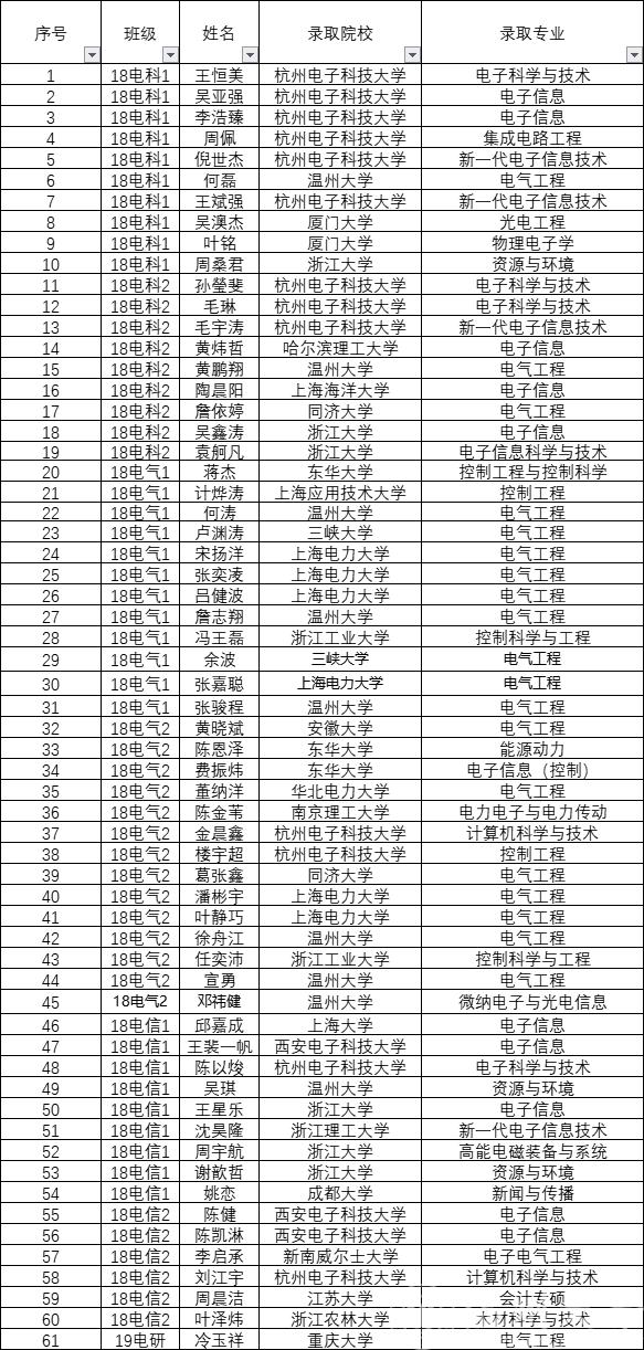 根据《纽约国际588888线路检测中心“聚创奖学金”评定办法》文件精神,结合纽约国际官网实际,学院将本年度考取硕士研究生、博士研究生及出国留学的61名同学直接评定为第三届“聚创奖学金”升学奖获得者,现将名单予以公示,公示三个工作日,如有异议请于公示期内与学工办联系,特此说明。